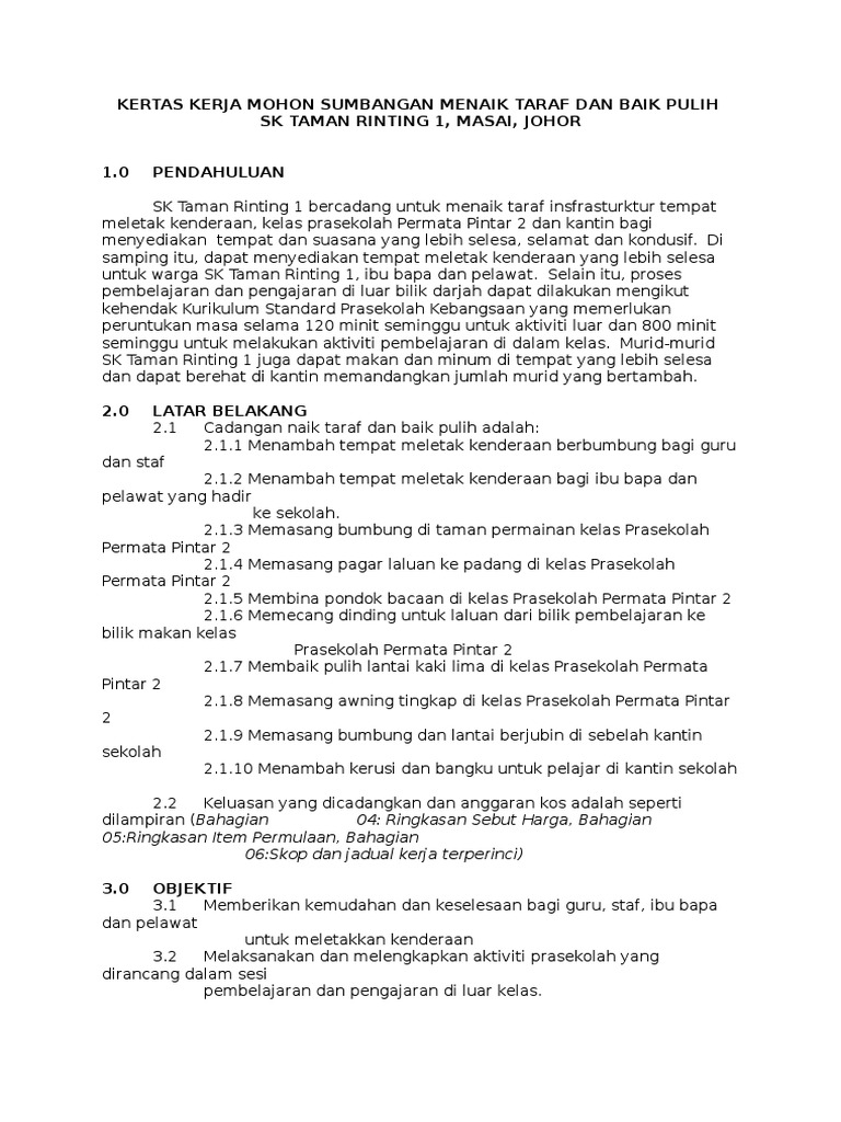 Kertas Kerja Mohon Sumbangan Menaik Taraf Infrastruktur Prasekolah Pdf
